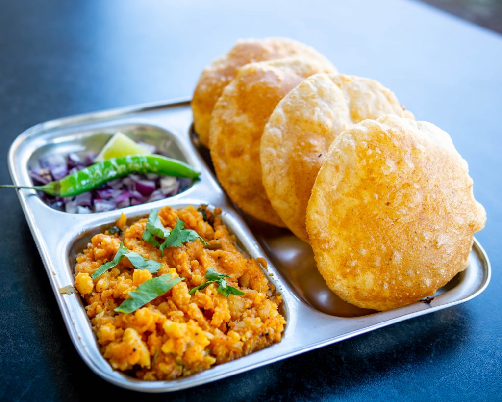 Fluffy, deep-fried puris served with a flavorful and spiced potato mash. A classic and satisfying dish.